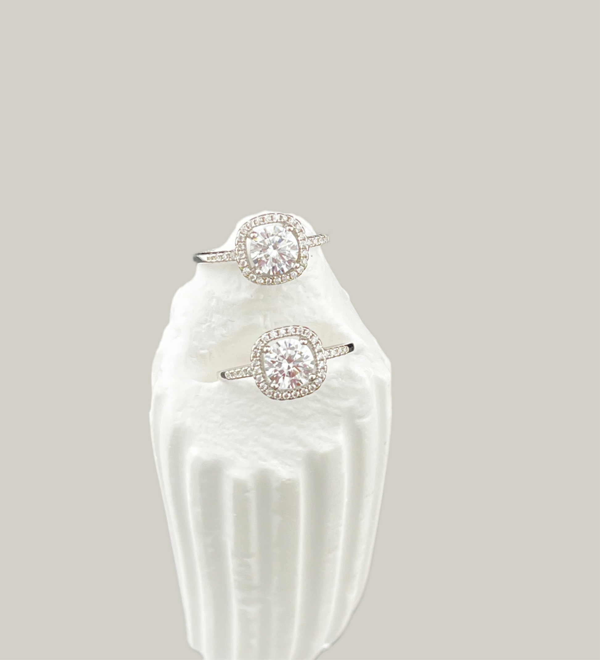 Add timeless elegance to your style with this 925 Sterling Silver halo ring, featuring a brilliant Moissanite center stone surrounded by delicate pavé accents. Ideal for engagements, anniversaries, or as a luxurious gift.