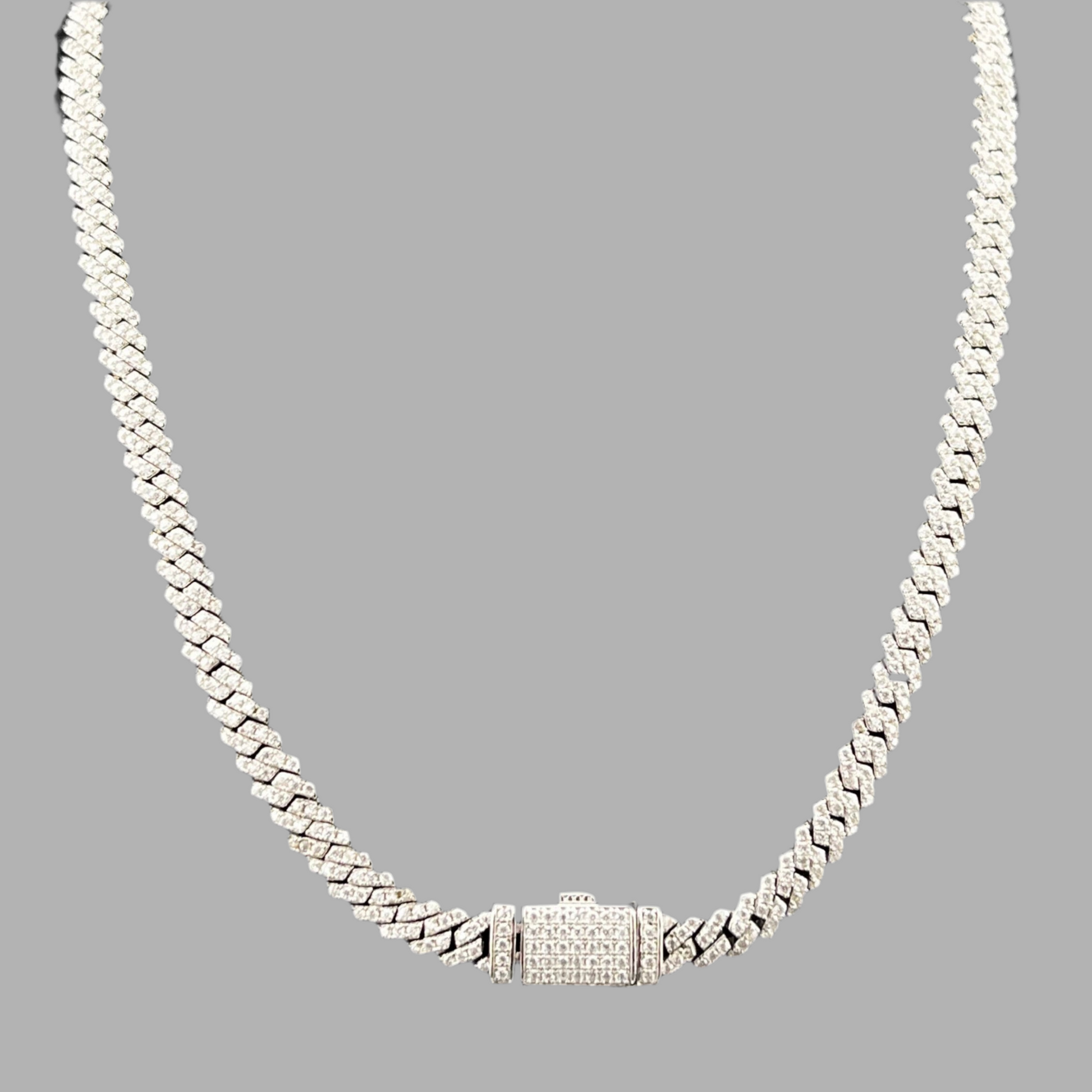 HIP-HOP Cuban Chain Moissanite Tennis Necklace – 925 Silver – Sizes 16, 18, 20”
