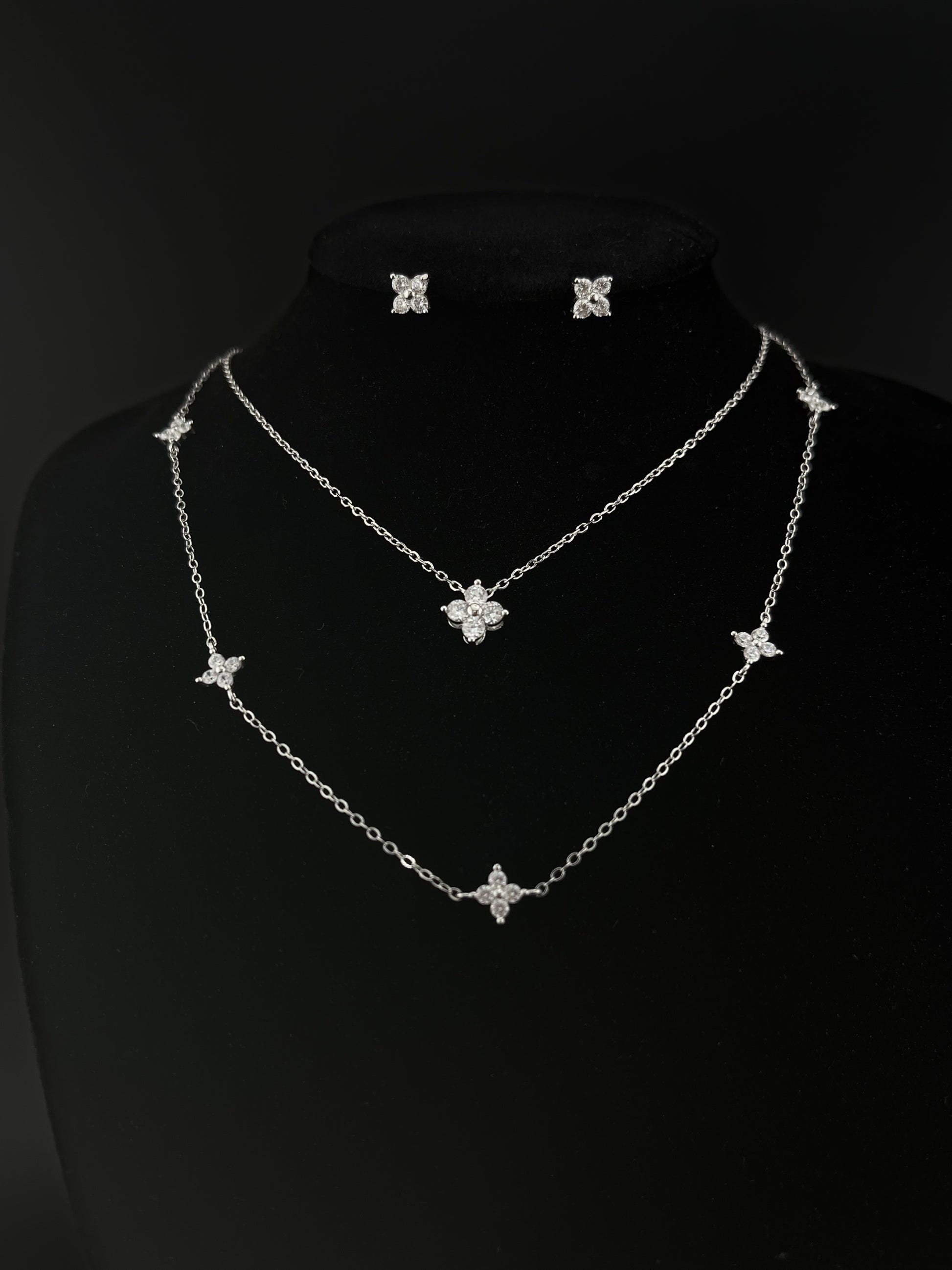 ROYBEL "Fleur Brillante" Layered Necklace Set with Stud Earrings – Available in Silver & Gold-Plated Silver